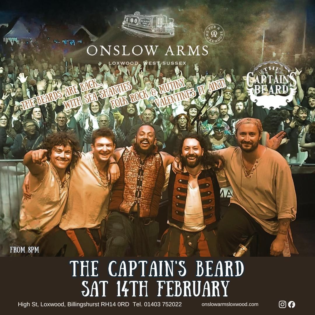 High Street, Loxwood, RH14 0RD Billingshurst, United KingdomTHE CAPTAINβS BEARD β LIVE AT THE ONSLOW ARMS The beards are backβ¦ and theyβre bringing the shanties with them! π Saturday 14th February π From 8pm Join us at the Onslow Arms for a raucous night of folk rock, sea shanties and glorious mutiny, as The Captainβs Beard return for an evening packed with […]